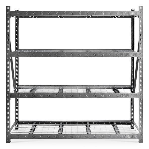 When it comes to superior strength and size, look no further than the 90″ x 90″ Gladiator® Heavy Duty Mega Rack. With over 50 sq ft (4.7 sq meters) of storage space and up to 8,000 lbs weight capacity1, our largest freestanding rack yet can handle the heaviest tools, parts and equipment you pack on it. Plus, its four adjustable shelves can easily be arranged at various heights to fit all your bulky gear in one convenient location.